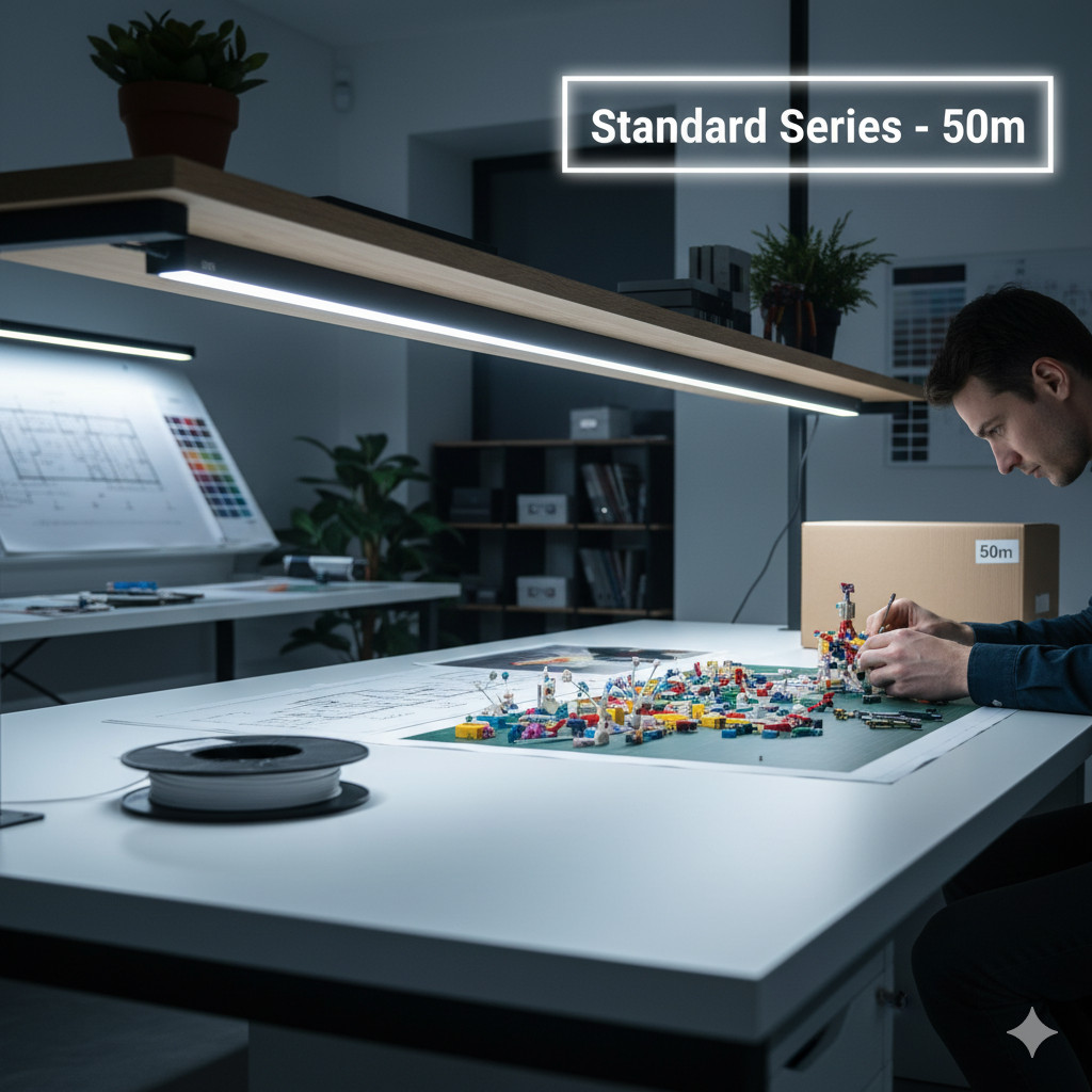 Extrém Kiszerelés (50 méter): Az 50 méteres tekercs minimalizálja a toldásokat, gyorsítva a szerelést és garantálva az egységes fényeloszlást a nagy felületeken.